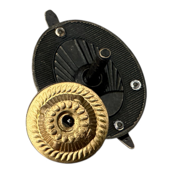 Made of solid metal alloy with dark enamel finish and antique patina.