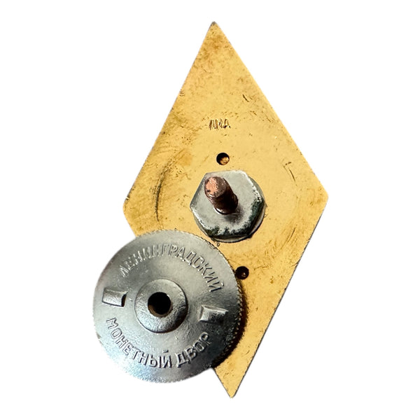 Originally produced in the Soviet Union (USSR), by the Leningrad Mint, marked “ЛМД” on the back, with original screw plate. Very good vintage condition with intact enamel and light wear from age. Size 4.2 × 2.1 cm, weight 11 g. A genuine collectible piece of Soviet history.