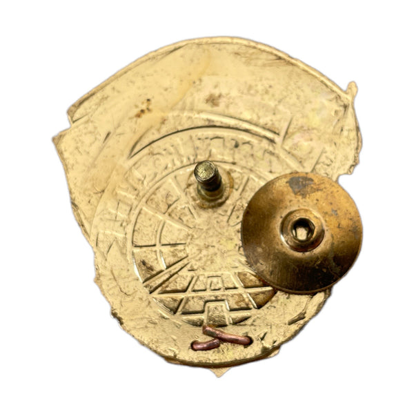 Brass and enamel badge consists of 2 parts, the main badge and a plate with years.